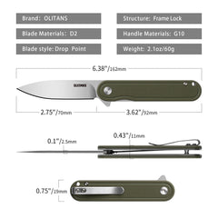 The OLITANS Rocket G040 is a compact EDC folding knife featuring a 2.75-inch D2 steel blade for excellent edge retention and hardness—ideal for outdoor cutting tasks.