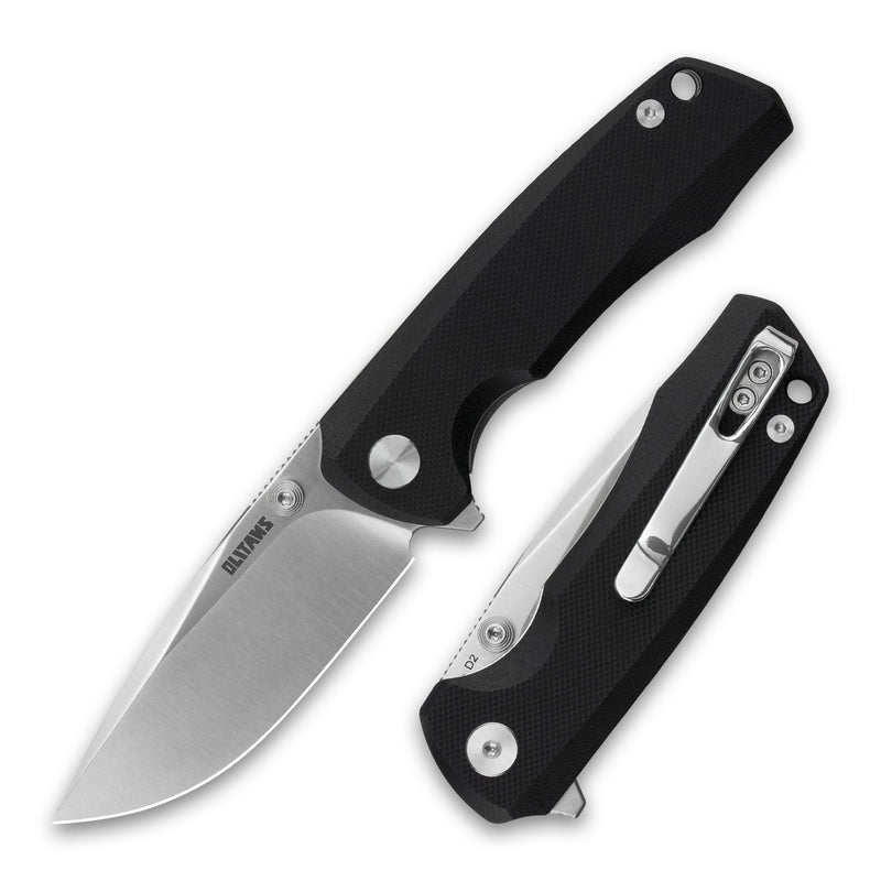 - OLITANS Bomber G061---The material used for the blade is D2 steel, which is a very nice steel that can keep edge retention, and has high hardness. 2.91 inches sharp blade can provide you with an balance cutting experience in the outdoors.