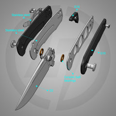 - G10 Handle - The handle length is 3.86'' for a good grip.G10 fiberglass is a popular material for folding knife handles, offering good stability, a comfortable grip, and excellent non-slip properties.