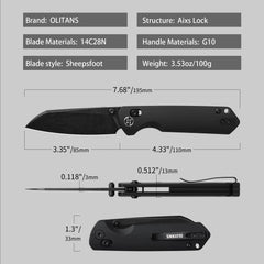 Blade: 14C28N steel delivers an excellent balance of edge retention and corrosion resistance. Wipe clean after use and lightly oil the pivot for smooth operation.