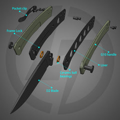 Blade: D2 tool steel offers excellent wear resistance and edge retention. Clean and dry after use to prevent rust. Apply a light coat of oil if stored for long periods.
