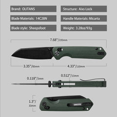 Blade: 14C28N steel delivers an excellent balance of edge retention and corrosion resistance. Wipe clean after use and lightly oil the pivot for smooth operation.