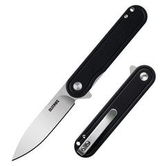 Its 3.62-inch G10 handle offers a secure grip with great stability and slip resistance. A liner lock ensures safe use, while the flipper tab allows for smooth, one-handed deployment.