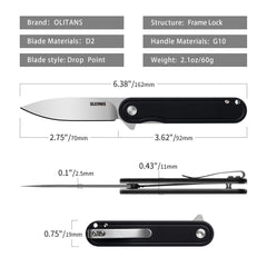 The OLITANS Rocket G040 is a compact EDC folding knife featuring a 2.75-inch D2 steel blade for excellent edge retention and hardness—ideal for outdoor cutting tasks.