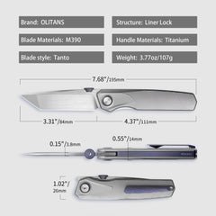 Stealth II T069 Folding Knife – (3.31" Tanto + Böhler M390 + Titanium-Brushed) – OLITANS