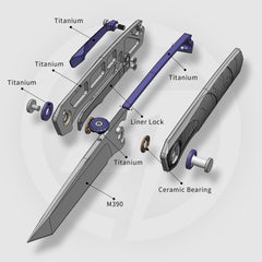 The titanium handle keeps things lightweight yet rock-solid, while the liner lock and ceramic bearing system ensure smooth, reliable action every time.