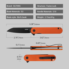 The OLITANS Rocket G067 is a compact EDC folding knife featuring a 2.75-inch D2 steel blade for excellent edge retention and hardness—ideal for outdoor cutting tasks.