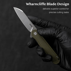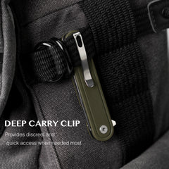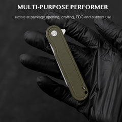 Its 3.62-inch G10 handle offers a secure grip with great stability and slip resistance. A liner lock ensures safe use, while the flipper tab allows for smooth, one-handed deployment.
