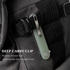 Its 3.62-inch G10 handle offers a secure grip with great stability and slip resistance. A liner lock ensures safe use, while the flipper tab allows for smooth, one-handed deployment.