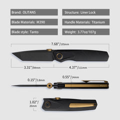 Stealth II T069 Folding Knife – (3.31" Tanto + Böhler M390 + Titanium) – OLITANS