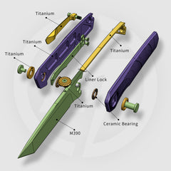 The titanium handle keeps things lightweight yet rock-solid, while the liner lock and ceramic bearing system ensure smooth, reliable action every time.