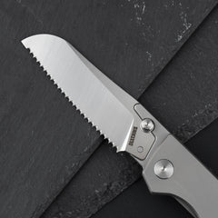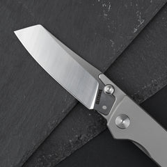 The grip is comfortable, the design is beautiful and practical, the titanium feels great in the hand and has an amazing natural color, and the blade is razor sharp and is sturdily held in its place with no play.
