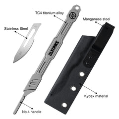 T020 Scalpel knife, 5.7'' Titanium scalpel handle, with 10pcs #24 Blades and Knife sheath, EDC Multi-Tool Craft Knives for Box Opening, Paper Cutting