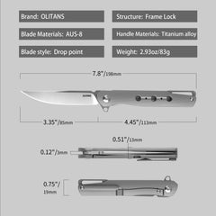 The OLITANS AL-T051 is a high-performance folding knife crafted for those who demand sleek design and solid functionality. Its streamlined silhouette hides a robust AUS-8 stainless steel blade, precision heat-treated to reach a hardness of 59 HRC—providing excellent edge retention, toughness, and corrosion resistance.