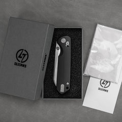 Meet the King Penguin, a robust and refined folding knife built for performance and everyday carry. Crafted with precision, this knife features a 14C28N stainless steel blade, known for its excellent sharpness, edge retention, and corrosion resistance. The blade comes in two finishes—sleek hand-sanded satin and bold black titanium stonewash—offering both elegance and durability.