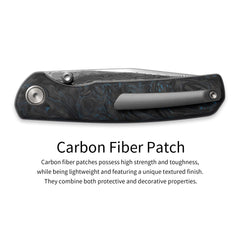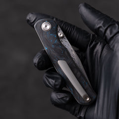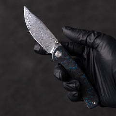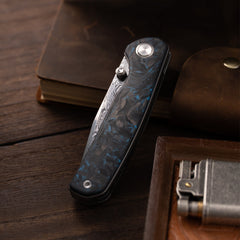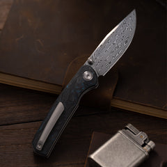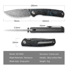 M070-DS Folding Knife(3.07''+Damascus+Carbon fibre)-Liner Lock-thumb stud-OLITANS