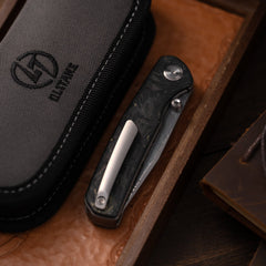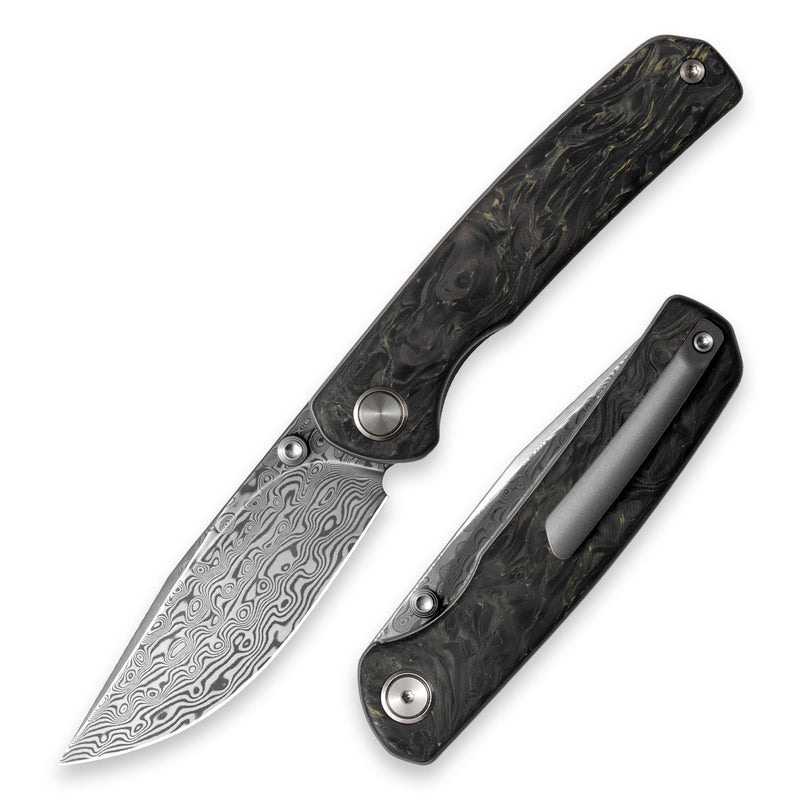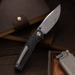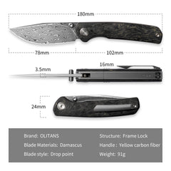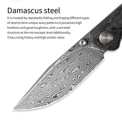M070-DS Folding Knife(3.07''+Damascus+Carbon fibre)-Liner Lock-thumb stud-OLITANS