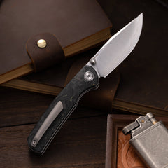 M070-SLD Folding Knife(3.07''+SLD Magic+Carbon fibre)-Liner Lock-thumb stud-OLITANS
